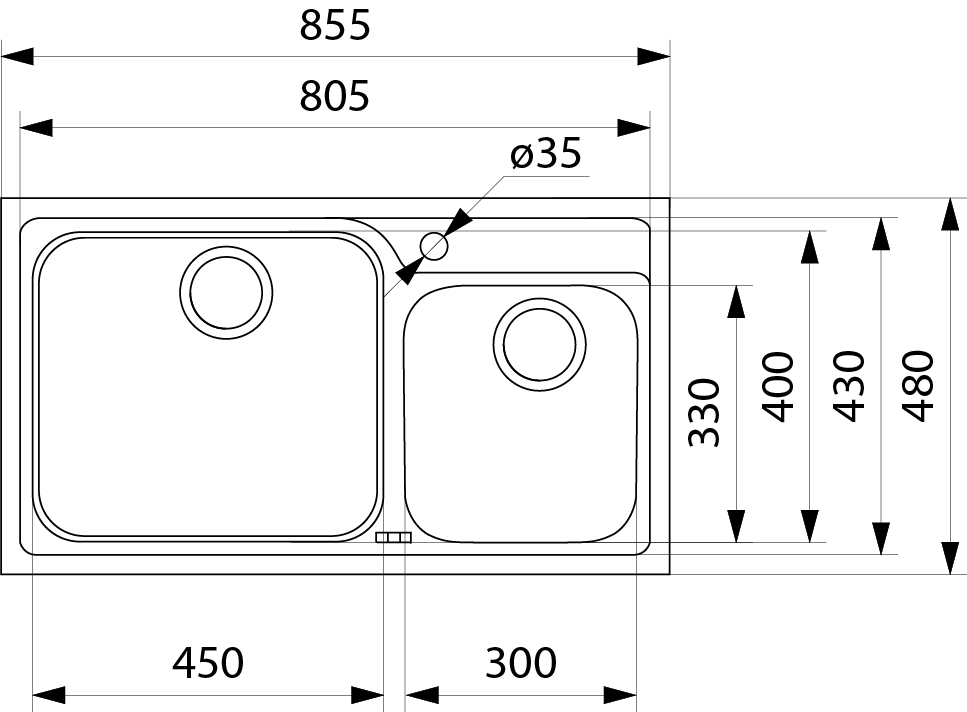 This 1 and 1/2 bowl sink offers a generous 46-litre capacity, allowing you to wash and rinse simultaneously. With wastes located at the rear, you will have more room in your cupboards below.